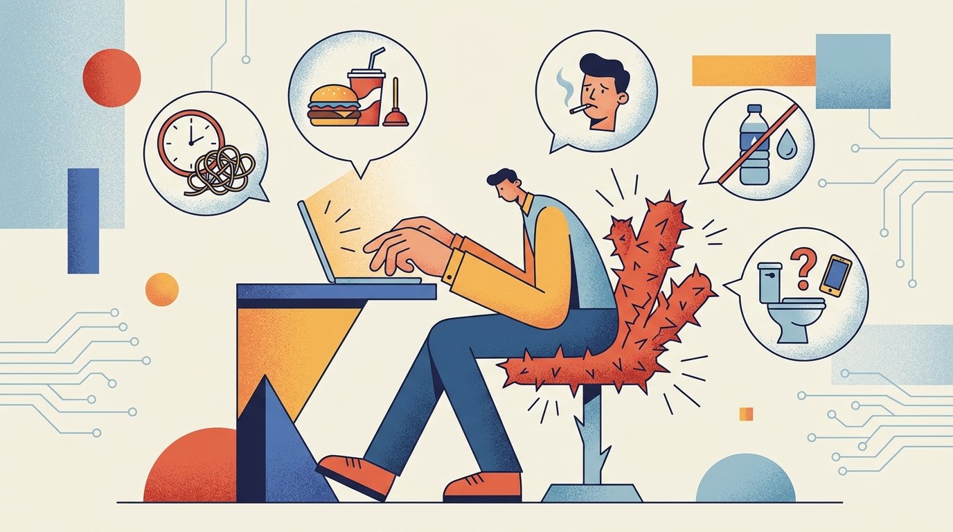 Nghề IT đòi hỏi sự tập trung cao độ trong thời gian dài, khiến nhiều người quên đi các nhu cầu cơ bản của cơ thể. Việc ngồi liên tục từ 8-12 giờ mỗi ngày, kết hợp với chế độ ăn uống thiếu chất xơ và căng thẳng liên tục, tạo ra "công thức hoàn hảo" cho bệnh trĩ phát triển.
