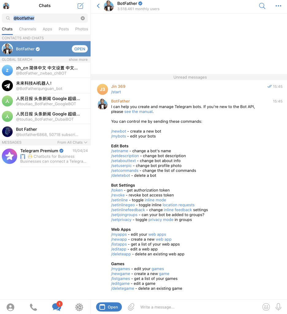Để tạo TELEGRAM_BOT_TOKEN thì các bạn vào Telegram, gõ @botfather vào ô tìm kiếm. Ấn Start